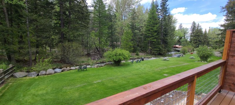 Sit on your deck and watch the river flow by from this riverside cabin. Cabin 107 and 108 are a duplex and would work well if you were to rent both units at once in order to have family and/or friends located side-by-side. This cabin is also located on the Flying Arrow Resort property and is near many other cabins including 101-112, Minnow, and Fawn, so other families could stay close by. This cabin has a nice deck with a great view of the river and the mountains! It is in a great location, it is near the go carts, horse riding, miniature golf, and more! Come stay in this cabin and enjoy all the great views and activities in this incredible area!
